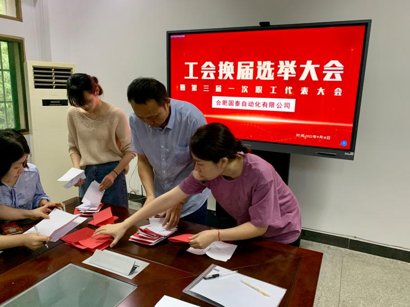 隨后,會議審議并通過了《合肥固泰自動化有限公司工會第三屆一次職工代表大會選舉辦法》、監(jiān)票人、計票人、候選人名單。通過無記名投票,差額選舉產生了由郭劍、王璐璐、高燕、王存和徐立娟五位同志組成的新一屆工會委員會委員,郭劍當選為工會委員會主席;由丁一冰、徐艷和董艷芹三名同志組成的新一屆經審委員會,丁一冰當選為經審主任。