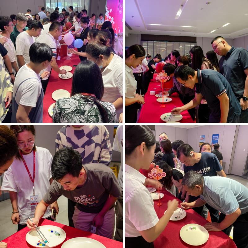活動(dòng)特別安排了“海底撈月”趣味游戲,在裝飾一新的食堂,一排排熱情的參與者有序排隊(duì),等待著他們的挑戰(zhàn)機(jī)會(huì)。參賽者們?cè)谙薅ǖ臅r(shí)間內(nèi),使用工具從月餅道具或玻璃球中夾起一個(gè),放在指定位置即為挑戰(zhàn)成功,這不僅考驗(yàn)了參與者的手眼協(xié)調(diào)能力,還兼顧了精準(zhǔn)度和速度。活動(dòng)過(guò)程中,現(xiàn)場(chǎng)氣氛熱烈。觀眾的加油助威和參賽者聚精會(huì)神的表情形成了鮮明對(duì)比,使得整個(gè)挑戰(zhàn)更加引人入勝。每當(dāng)有人成功夾起道具時(shí),掌聲和歡呼聲便響徹食堂,而失敗的嘗試則帶來(lái)一片惋惜聲和鼓勵(lì)的吶喊。成功完成挑戰(zhàn)的人可以獲得參與抽獎(jiǎng)的機(jī)會(huì),贏取豐富獎(jiǎng)品。即使挑戰(zhàn)失敗,參與者也不會(huì)空手而歸,食堂精心準(zhǔn)備的幸運(yùn)獎(jiǎng)確保每位員工都能感受到節(jié)日的快樂(lè)和企業(yè)的關(guān)懷。